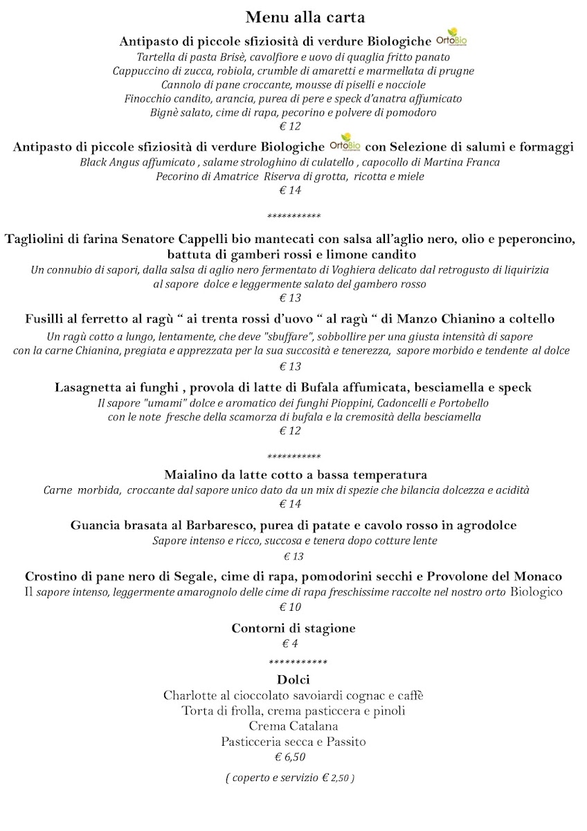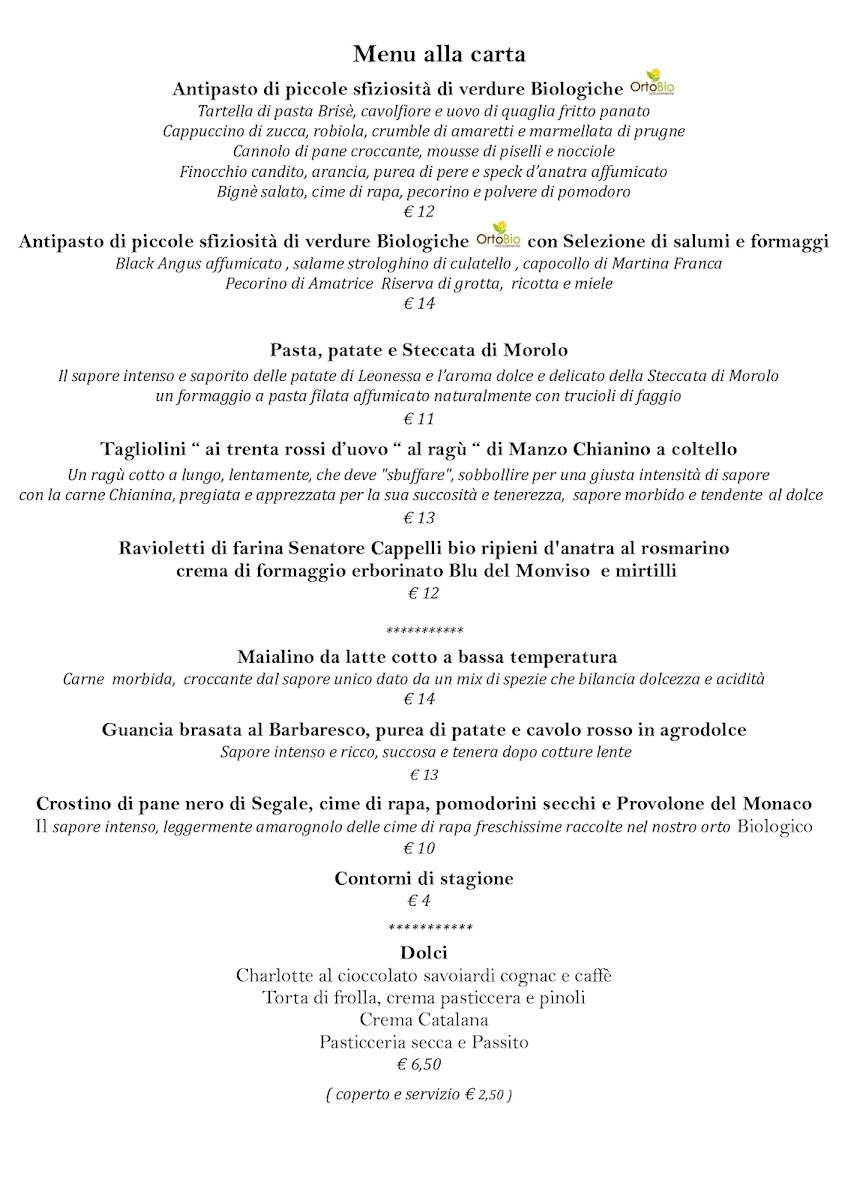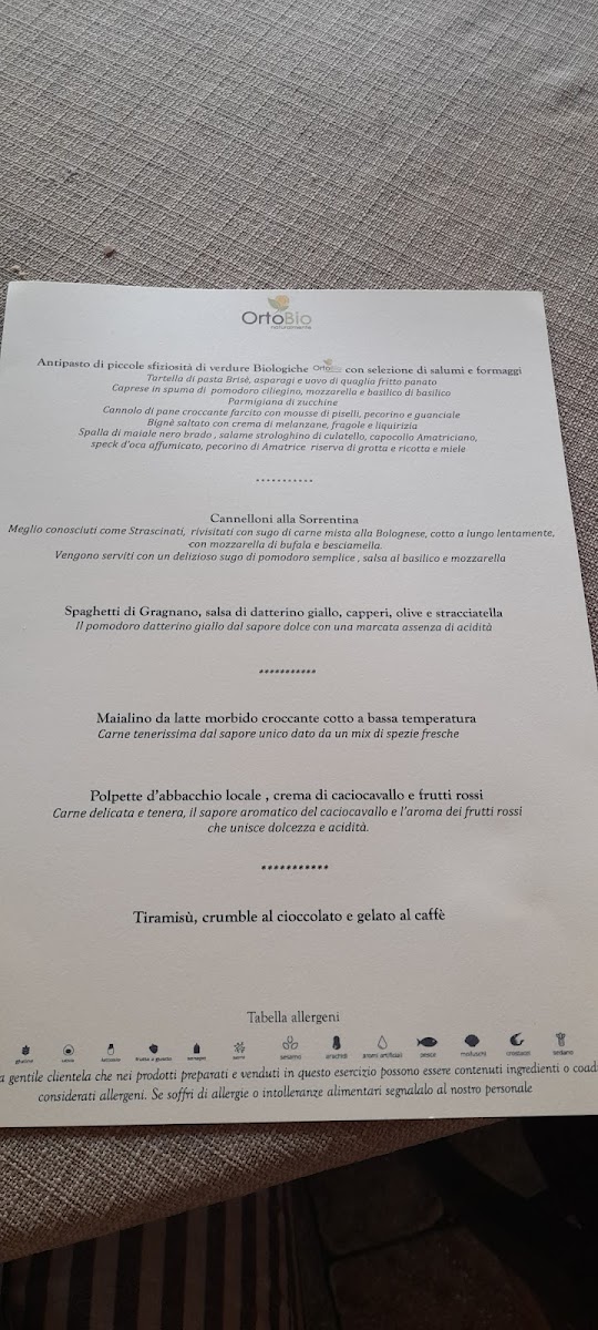 Agriturismo Ortobio Menu